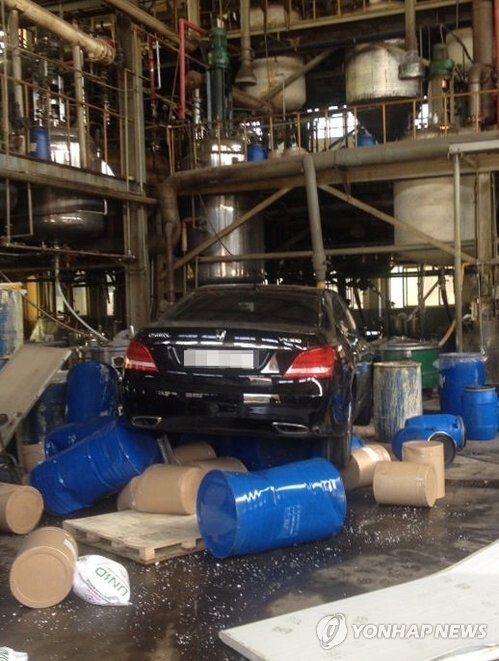 8일 오후 1시경 시흥시 정왕동 한 공장에서 A(74)씨가 몰던 에쿠스 승용차가 주차장으로 진입하다가 갑자기 가속이 붙어 공장 출입문을 부순 뒤 공장 내에 진입해 집기류를 들이받고서야 멈췄다.