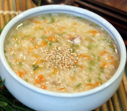 [재료] 주꾸미 100g, 미나리 100g, 당근 20g, 팽이버섯 10g, 참기름(약간), 불린쌀 60g, 물(또는 다시마 육수) 1컵