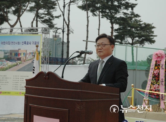 이날 기공식에는 성무용 천안시장, 정윤석 LG복지재단 전무, 이문호 천안연암대학 총장, 천안시 어린이집연합회장, 지역주민 등 200여 명이 참석했다.
