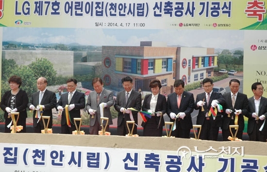 LG가 천안시에 건립 기증하는 제7호 어린이집(천안시립)은 천안시가 시유지 1550㎡를 제공하고 LG가 16억 원을 투자해서 건립된다.