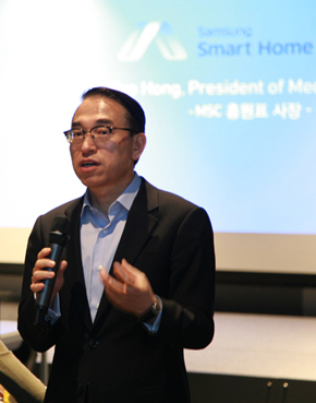 한편 홍 사장은 스마트홈 서비스가 사용자의 사생활을 침해할 가능성이 없느냐는 질문에 “고객의 사생활 침해 가능성이 있는 정보는 서버(대형컴퓨터)에 저장할 계획이 없다”면서 “삼성전자는 어떤 회사보다 제품군이 다양해 삼성 스마트홈이 시너지 효과를 낼 것”이라고 말했다.