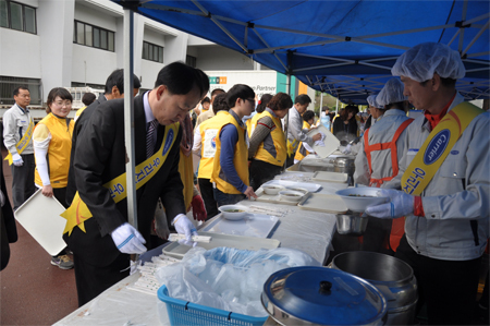캐리어에어컨 임직원과 관계사 직원들은 궂은 날씨에도 행사장을 찾아와준 참가자들을 위해 메밀국수 800인분과 도토리묵 250접시를 제공하고 자사의 클라윈드 에어컨 3대를 경품으로 후원했다.