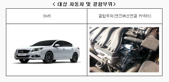 리콜 대상 차량은 2009년 10월 28일부터 2013년 5월 2일 제작된 SM5 16만 1700대다. 이 차량은 점화코일 배선과 엔진 배선을 연결하는 커넥터 내부핀의 접촉 불량으로 시동이 꺼질 수도 있다는 것이다.