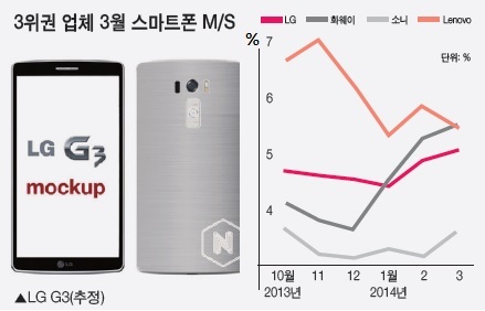 김현용 이트레이드증권 애널리스트는 “아직 결론을 내기는 이른 시점이나 LG가 레노버보다는 유리한 상황”이라며 “G3 출시를 분수령으로 연내 확고한 3위의 주인공이 가려질 것”이라고 전망했다.