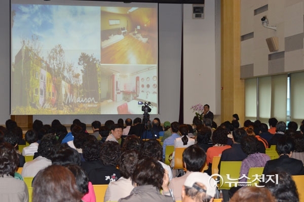 이날 (주)태성아이앤티는 ▲도시형생활주택의 향후 주거트랜드로 주목받는 ‘쉐어하우스’ ▲부담 없는 자금으로 간편하게 지을 수 있는 실속형 소형주택과 방갈로 등 ‘소형전원주택’ ▲2018년 개통 예정인 서해안 복선전철 관련 ‘당진 합덕역세권’ ▲2014년 말 완공 예정인 공주역에 따른 ‘충남 공주역세권’ 등에 대해 준비된 파워포인트 자료를 통해 자세히 소개하기도 했다.