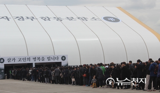 [천지일보 안산=강은주 기자] 세월호 희생자들을 추모하기 위한 정부 합동분향소가 29일 안산 화랑유원지에 마련돼 조문객을 맞았다.