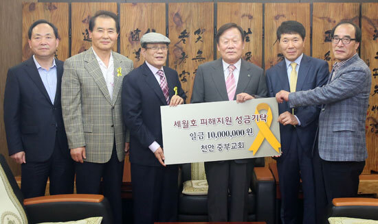[천지일보 천안=박주환 기자] 충남 천안시 천안중부교회(담임목사 문용권)는 지난 2일 천안시를 방문해 세월호 침몰사고 피지원에 써달라며 성금 1000만 원을 전달했다.