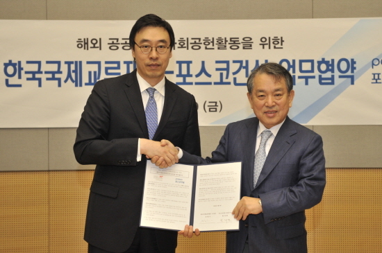 [천지일보=손성환 기자] 포스코건설(사장 황태현)이 지난 9일 인천 송도 사옥에서 외교부 산하 한국국제교류재단(이사장 유현석)과 해외 공공외교 사회공헌활동을 위한 업무협약을 체결했다.