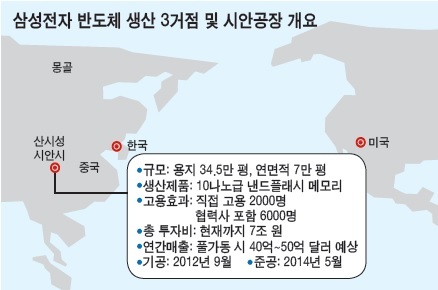 또한 시장의 성장 가능성도 삼성이 시안을 택한 주요인으로 작용했다. 시장조사업체인 아이서플라이에 따르면 지난해 전세계 반도체 시장은 3370억 달러로 이 가운데 중국 반도체 시장은 전체 시장의 39%에 해당하는 1300억 달러를 차지했다. 올해는 중국 시장의 비중이 더 커져 전체 3620억 달러(전망치)의 40%에 해당하는 1440억 달러로 성장할 것이란 전망이다.