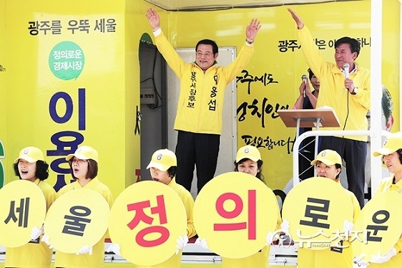 [천지일보 광주=이지수 기자] 이용섭 광주시장 무소속 후보가 22일 오전 광주시 동구 금남로 구도청에서 선거 승리를 위한 출정식을 열었다.