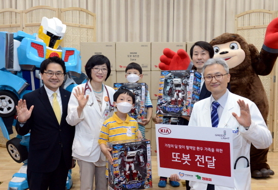 [천지일보=손성환 기자] 기아자동차가 가정의 달 5월을 기념해 26일 국립암센터(경기도 고양시 소재)에 혈액암 환아 및 환자 자녀 100명을 초청해 K3, 레이, 쏘렌토 등 기아차 주요 모델을 바탕으로 제작한 인기 캐릭터 ‘또봇’ 완구를 증정하는 행사를 진행했다.