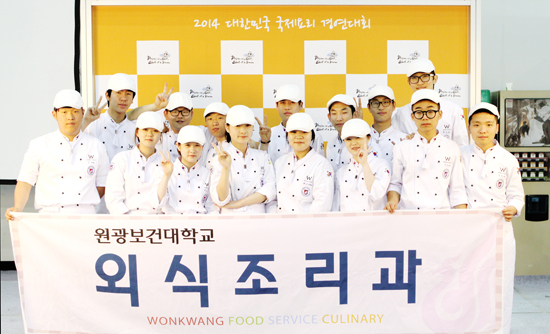 한편 원광보건대 외식조리과는 본 대회 외에도 5월 한 달 간 ‘2014 서울국제식음료외식조리경연대회’(금상-2학년 하종찬, 1학년 최희정), ‘제1회 특성화 고교 및 전문대학 케익 콘테스트’(인기상, 1학년 신혜원) 등 다수의 전국규모대회에서 좋은 성적을 거둔 바 있다.
