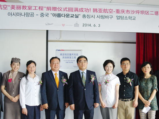 아시아나항공은 지난 3일 중국 충칭 사핑바구 얼탕소학교에서 KOICA와 함께 아름다운 교실 자매결연을 맺었다.