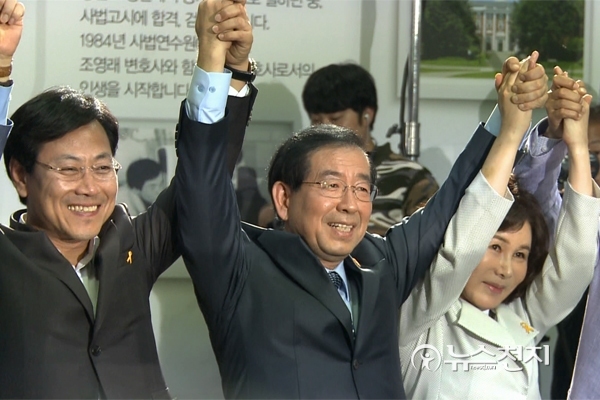 2011년 서울시장 재보궐선거에서 당선돼 서울시를 맡아온 박원순 당선자는 10%가 넘는 득표율 차로 새누리당 정몽준 후보를 누르고 서울시장 재임에 성공했습니다.