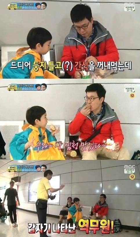 [천지일보=박혜옥 기자] ‘아빠어디가’ 김성주와 김민율이 홍콩 지하철에서 빵을 먹다 역무원에게 제지당했다.