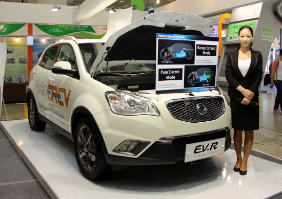 ‘코란도C’ 플랫폼을 기반으로 제작된 ‘코란도C EV-R’은 100㎾급 전기모터와 34㎾h 420V 고전압 리튬 폴리머 배터리가 조합돼 최대 150㎞까지 순수 전기에너지(EV모드)만으로 주행할 수 있다. 여기에 10㎾용량의 고효율 엔진 발전기가 자가 발전해 별도의 충전 없이 최대 주행거리를 확장해 최대 300㎞(최고속력 150㎞/h)까지 주행할 수 있다.