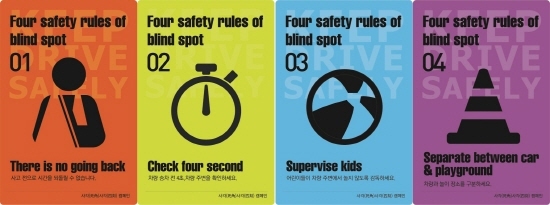 ‘사각(死角)사각(四刻) 캠페인’은 어린이 교통사고와 운전자에게 잘 보이지 않는 영역인 사각 지대에서 발생할 수 있는 사고를 예방하기 위해 차량 승차 전이나 출발 시에 유의해야 할 네 가지를 마음속에 새기고 실천하자는 의미가 담겨있다.
