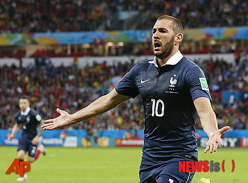 프랑스는 16일(한국시각) 브라질 포르투알레그리의 베이라히우 주경기장에서 열린 ‘2014 브라질 월드컵’ 조별리그 E조 1차전에서 2골을 넣고 상대 자책골까지 유도한 최전방 공격수 카림 벤제마의 맹활약을 앞세워 온두라스를 3-0으로 꺾었다.