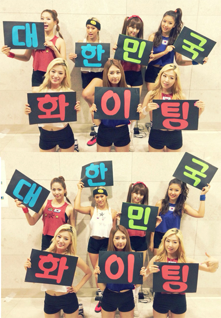 공개된 사진 속에는 “대한민국 화이팅”이란 플랜카드와 함께 태극기가 새겨진 의상을 입고 각기 개성이 묻어나는 다양한 표정과 포즈를 취하고 있다.
