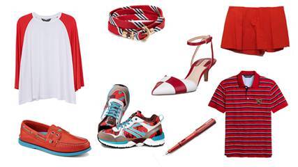 응원단처럼 머리부터 발끝까지 레드로 꾸밀 수는 없지만 슈즈나 팔찌처럼 액세서리로 포인트를 줄 수 있다.