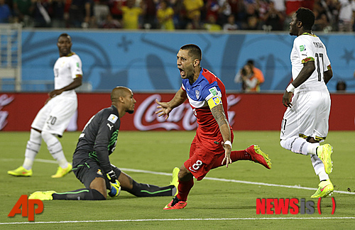 17일 오전 7시(한국시각) 열린 2014 브라질 월드컵 G조 조별리그 1차전 미국 대 가나의 경기에서 미국 공격수 클린트 뎀프시가 전반 32초 만에 가나의 골문을 열었다.
