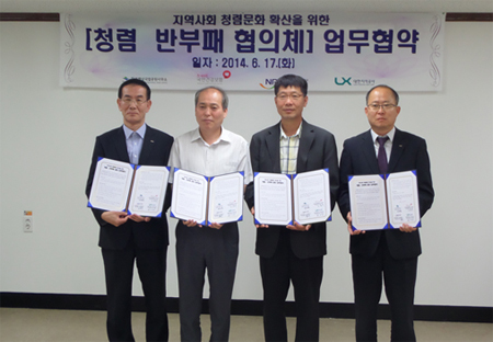 금번 지역사회 유관기관들이 자발적으로 뜻을 모아 결성한 청렴․반부패 협의체에서는 투명한 공직사회를 바라는 국민적 기대에 부응하고, 지역사회공헌활동 및 청렴․반부패 문화 확산, 윤리경영문화 확산을 위한 간담회를 실시했다.