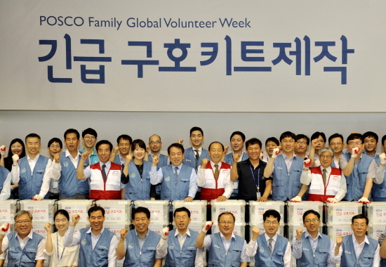 황태현 포스코건설 사장을 단장으로 하는 포스코패밀리 인천봉사단 100여 명은 긴급구호키트 1000개를 제작해 전국재해구호협회(회장 최학래)에 전달했다. 긴급구호키트는 태풍, 지진, 홍수 등 각종 재난상황 발생 시 피해 이웃에게 전달된다. 구성품은 의약품, 모포, 속옷, 세제, 수건 등 생필품 19종으로 이뤄졌다. 구호키트 일부는 포스코건설이 진출한 해외 현장 인근지역의 빈곤층에게 전달해 도움을 줄 계획이다.