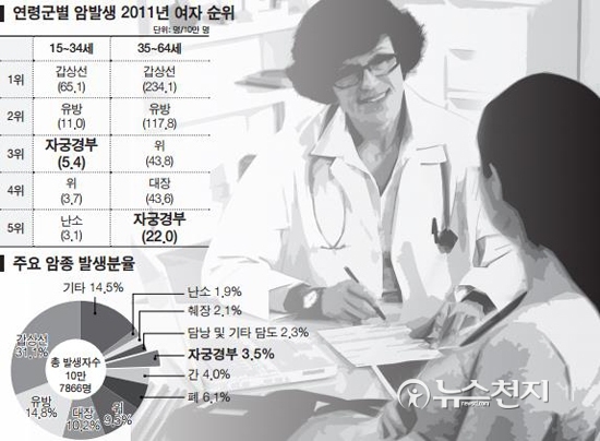 특히 자궁경부 상피내암은 젊은 여성에서 증가세가 매우 가파른 것으로 나타났다.