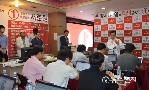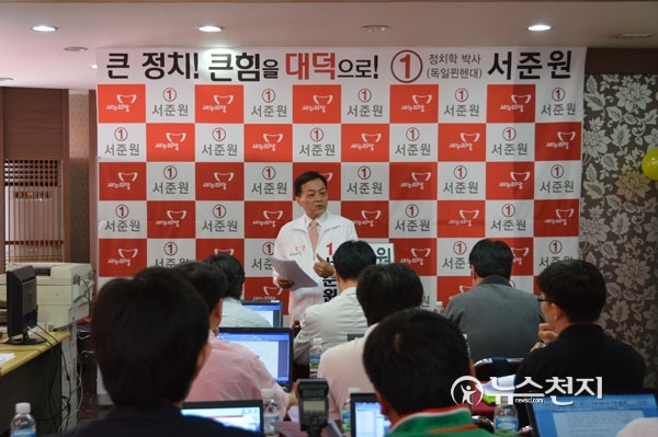 [천지일보=김지현 기자] 서준원 대전 대덕구 국회의원 예비후보(독일 뮌헨대 정치학 박사, 여의도연구원 이사)가 24일 오전 11시 대덕구 중리동 선거사무실에서 기자회견을 열고 출마의 각오와 이유를 밝혔다.