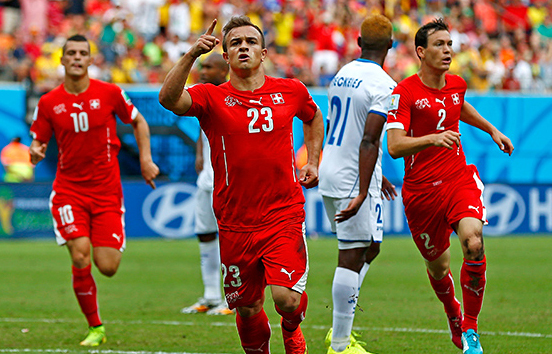 스위스는 26일 오전 5시(한국시간) 브라질 마나우스의 아레나 아마조니아에서 2014 브라질월드컵 E조 조별리그 3차전 경기에서 제르단 샤키리의 해트트릭 맹활약으로 온두라스를 3-0으로 대파했다.