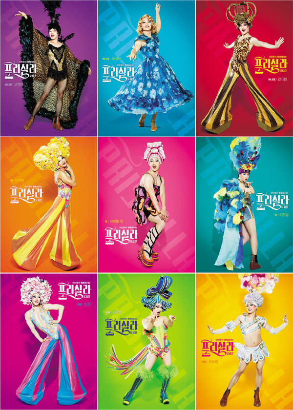 설앤컴퍼니는 뮤지컬 ‘프리실라’ 캐릭터 포스터를 공개했다. 포스터에는 화려한 의상을 입고 개성 있는 포즈로 매력을 뽐내고 있는 주연 배우 9명의 모습이 담겼다. 특히 배우 조성하는 금발 머리에 파란색 드레스를 입고 우아한 여장남자로 변신했다.
