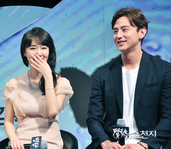 ▲ 배우 이정현과 권율이 26일 오전 서울 강남구 압구정CGV에서 열린 ‘명량’ 제작발표회에서 환하게 웃고 있다. ⓒ천지일보(뉴스천지)