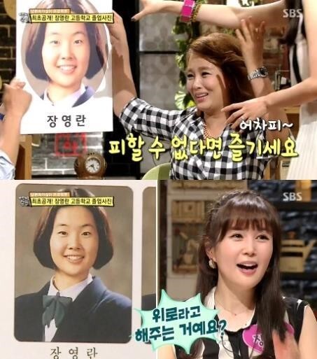 이때 장영란의 고등학교 졸업 사진이 등장했다. 문제는 고등학교 졸업 사진이 성형 전 모습이라는 것.
