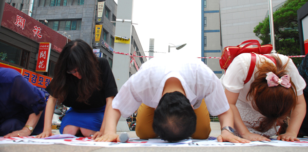 이날 회원들은 현수막을 준비해 중국대사관 앞 우체국에서 항의 성명 낭독과 퍼포먼스를 진행했다. 이들은 “시진핑 주석에게 간절한 마음으로 북송을 중단해줄 것을 부탁한다”고 말한 후 세 번 절을 했다.