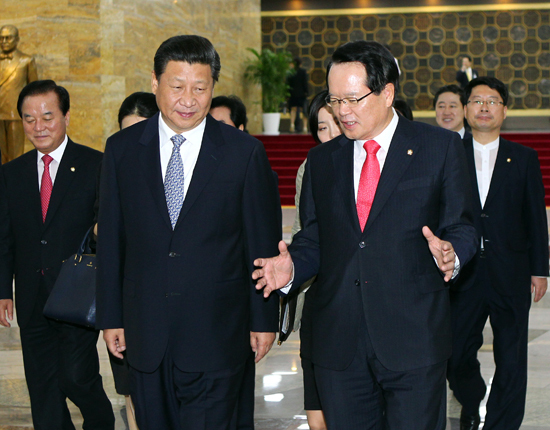 [천지일보=임문식 기자] 시진핑(習近平) 중국 국가주석이 방한 이틀째인 4일 오전 정의화 국회의장을 예방했다.