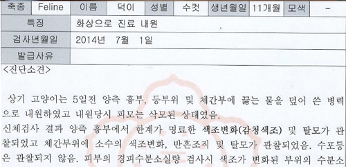 이 고객은 “단 1원의 위로금도 요구하지 않고 단지 고양이 치료비만을 요구했는데 이처럼 말을 바꿨다”며 억울함을 토로했다. 또 “본사 책임자와의 통화를 요구해도 ‘고객과 일일이 통화할 수 없다’는 답변만을 들었다”며 회사의 응대방식에도 문제를 제기했다.