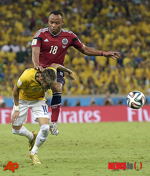 5일(한국시간) 브라질 포르탈레자에서 ‘2014 브라질 월드컵’ 브라질-콜롬비아 전이 치러졌다. 브라질은 콜롬비아를 2대 1의 승리를 거두며 4강에 진출했다. 하지만 이날 경기 후반 42분경에 헤딩 경합 과정에서 네이마르가 수니가의 무릎에 부딪혀 부상을 당해 병원에 실려 갔다.