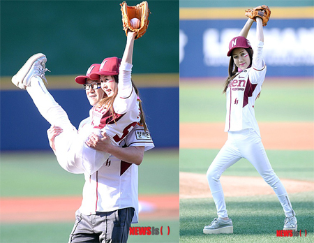 [천지일보=박혜옥 기자] 배우 박준금과 개그맨 지상렬이 이색적인 시구 퍼포먼스를 선보여 화제다.