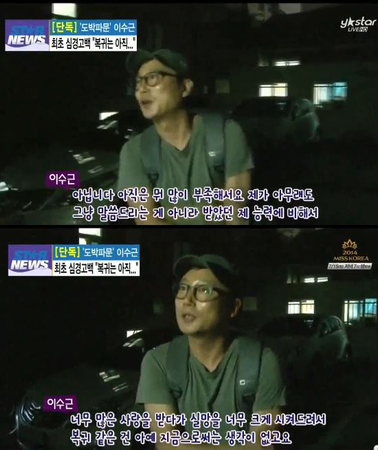 7일 오후 방영한 Y-STAR ‘스타뉴스’에서 이수근은 아직은 복귀 의사가 없다고 밝혔다.