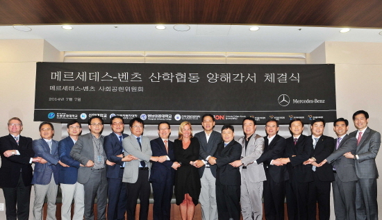 메르세데스-벤츠 사회공헌위원회(위원장 브리타 제에거)는 7일 2시, 서울 메르세데스-벤츠 코리아 본사에서 산학협동 프로그램 ‘메르세데스-벤츠 모바일 아카데미(Mercedes-Benz Mobile Academy)’ 참여 대학과 양해각서 체결식을 진행했다.