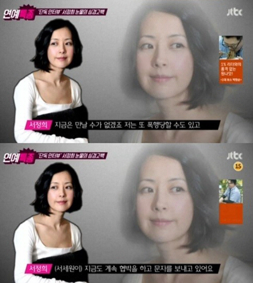 한편 공개된 CCTV 영상에는 서정희가 서세원에게 다리 한 쪽만 잡힌 채 끌려가는 모습이 담겨 있어 충격을 안겼다.