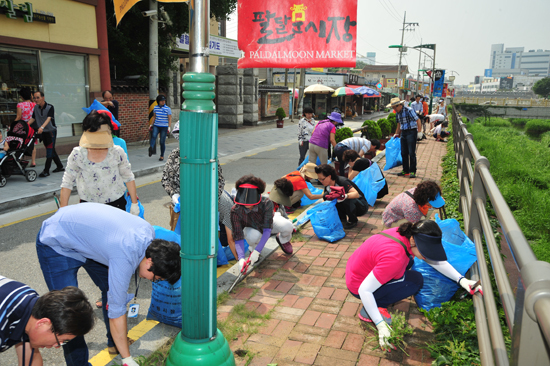 수원천 변 일대에는 전태헌 수원시 제1부시장을 비롯한 김찬영 팔달구청장, 이상윤 환경국장, 팔달시장 상인회와 지역 주민 300여 명이 참여해 대청소를 했다.