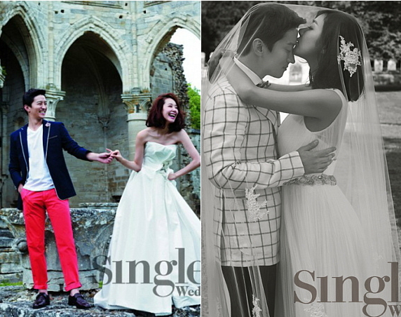 29일 웨딩매거진 싱글즈 웨딩 측은 “소이현과 인교진이 함께한 커버와 웨딩 화보가 8월호를 통해 공개된다”며 화보 일부를 공개했다.