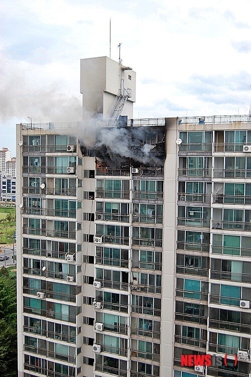 14층에서 시작된 불길은 15층으로 번져 김씨의 집은 전소했고 윗집은 반소하는 등 8500만 원(소방서 추산)의 재산피해가 났다.