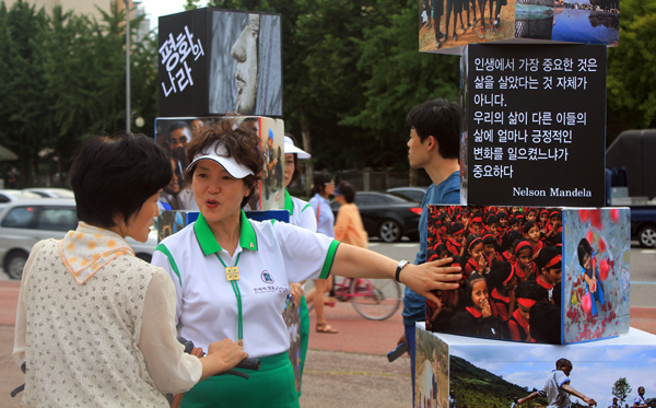 평화 사진전은 ‘평화’를 주제로 한 평화의 인물 캐리커쳐와 평화로운 일상, 전쟁 속 평화의 모습으로 다양한 평화를 담아냈다. 특히 어린 아이들이 겪는 전쟁과 평화의 두 가지 상황을 그림으로 비교 선택하는 체험 존(Zone) 부스는 평화의 소중함을 더욱 실감하게 했다.