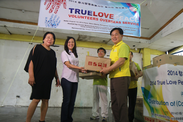 이어 한국에서 가져온 의약품, 의류, 학용품 기증했다. 통일그룹 계열사인 (주)일화는 이번 필리핀 해외봉사를 위해 영양제, 항생제, 소염진통제 등 일반의약품과 전문의약품 1억 2000만여 원의 의약품을 7월 15일 기증했고, 일미치과는 2400만여 원의 치과의약품을 기증했다. 케손시에서는 주민들의 감사한 마음을 담아 감사패를 전달했다.