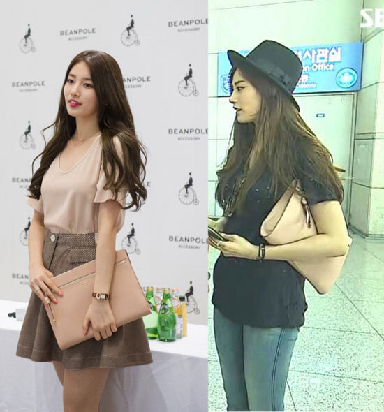 지난달 부산에서 진행된 사인회에 참석한 수지와 최근 SBS 예능 ‘룸메이트’에서 나나는 똑같은 클러치 백을 매치, 각각 다른 느낌의 룩과 매력을 선보였다.