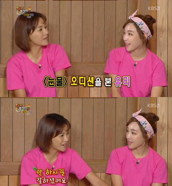 이날 이유리 씨도 ‘눈물’ 오디션을 봤었지만 낙방했다고 고백했다. 그러자 박잎선은 “안 하길 잘했다”며 “노출이 좀 있었다”고 자진 디스했다.