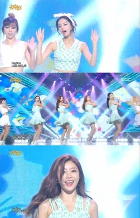 이날 방송에서 걸스데이는 하늘색 계열의 의상에 미니스커트를 입고 몸매를 뽐내며 깜찍한 안무로 팬들의 눈길을 끌었다.