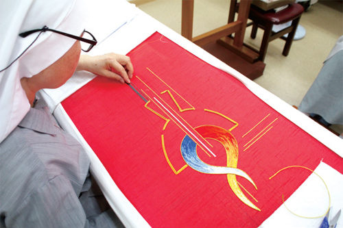 교황이 16일 순교자 124위 시복식에서 입을 제의는 수녀들의 섬세한 수작업으로 제작되고 있다. 스승예수의제자수녀회가 지난 5월부터 디자인을 시작해 6월 본격적인 제작에 돌입해 진행 중이다. 수녀들은 제의로 사용될 붉은 천에 수작업으로 일일이 수를 놓았다. 무늬는 방한 기념 로고와 성작, 칼을 소재로 수난 뒤 따라오는 십자가의 영광을 조화롭게 형상화했다.